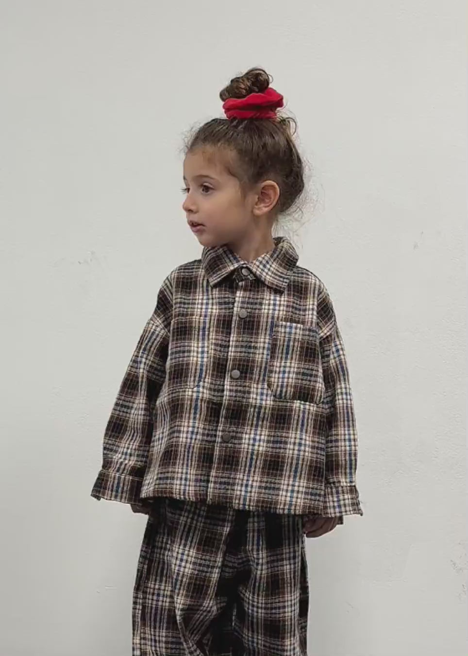 Camicia in 100% cotone a quadri. Colletto classico. Chiusura frontale con bottoni. Maniche lunghe con polsino abbottonato. Taschino frontale.